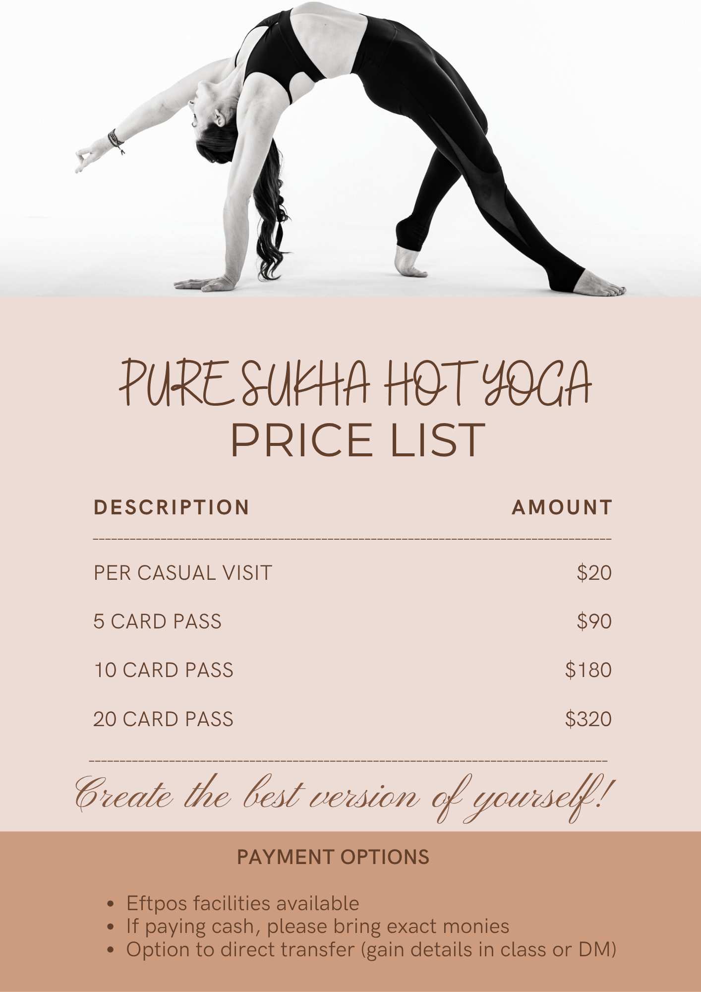 Pure because these classes are unique and authentic and Sukha because in Sanskrit it is a word meaning “bliss” or “happiness” and happiness is an inside job. Do what you love and love what you do.